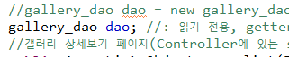 gallery_dao dao = new gallery_dao(); //setter, getter 모두 사용